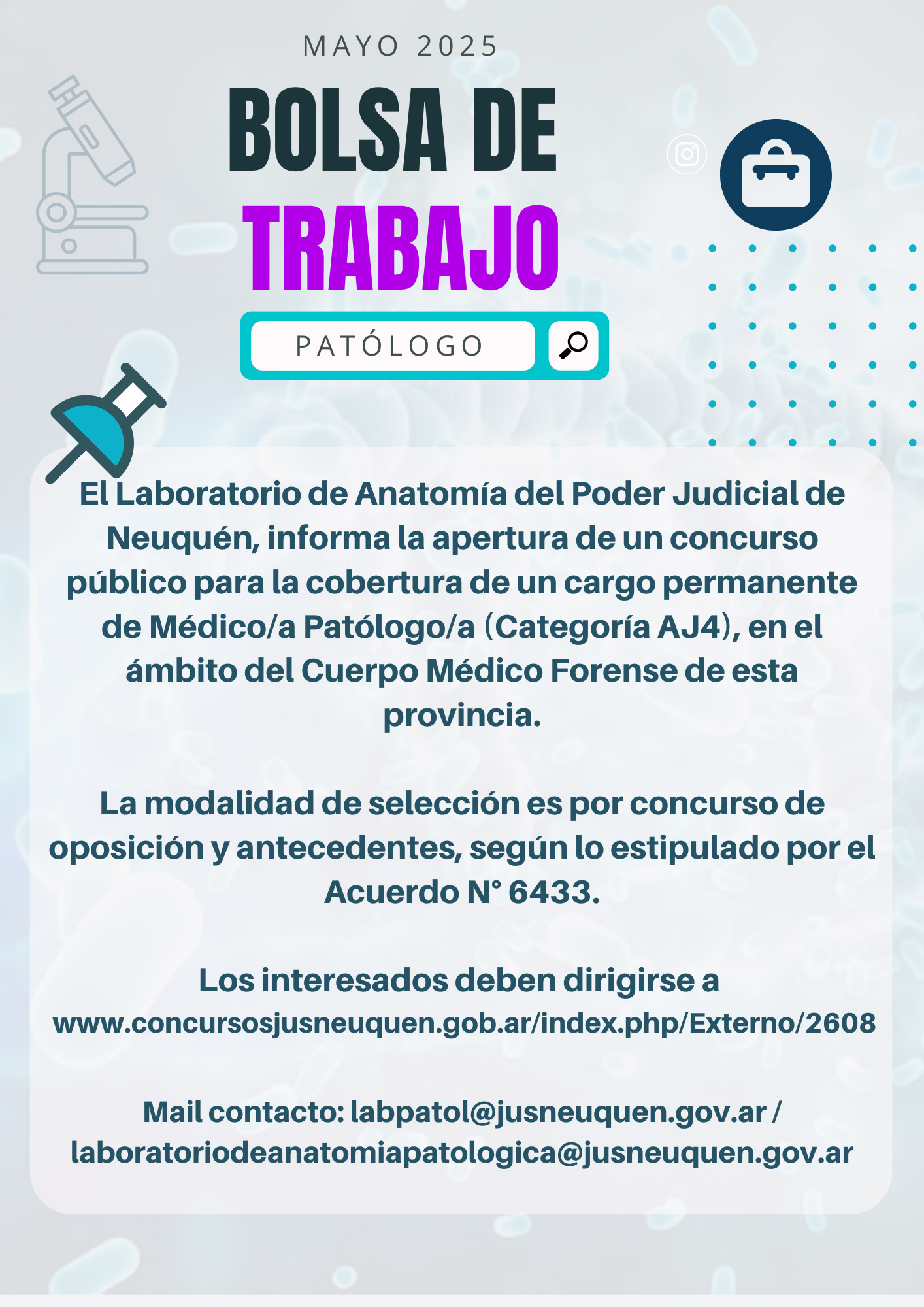 En esta sección se publicarán los servicios profesionales ofrecidos y pedidos, de interés para los profesionales en anatomía patológica.