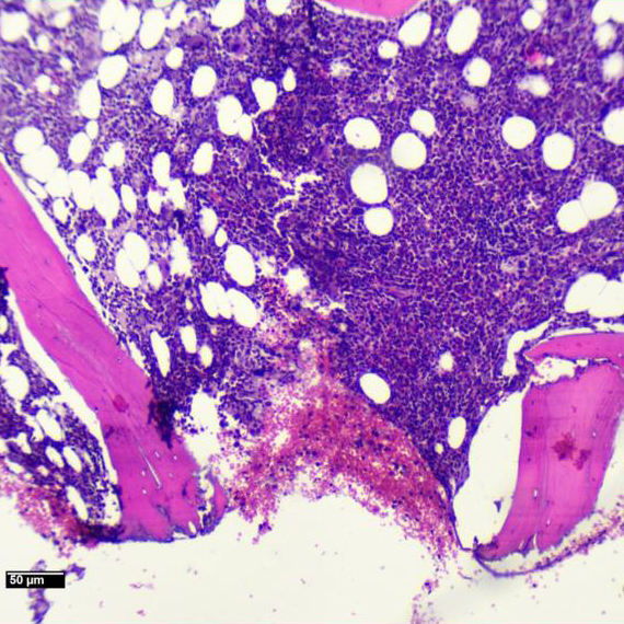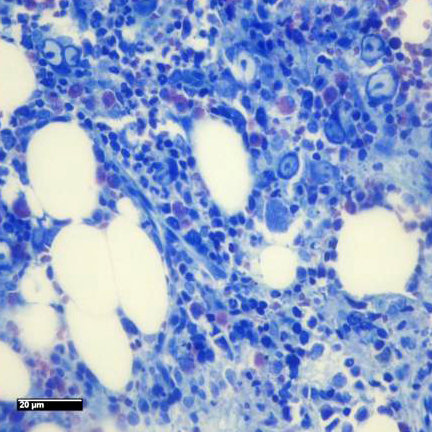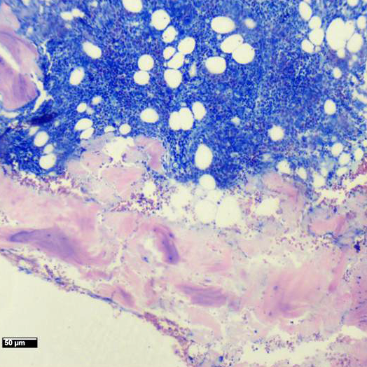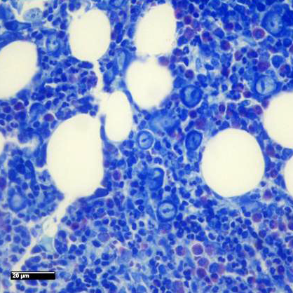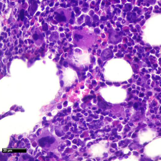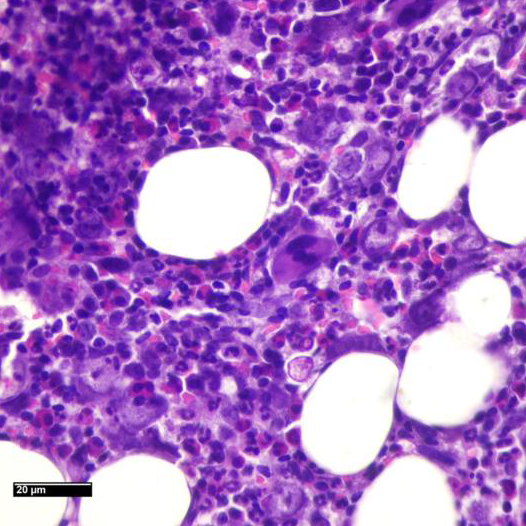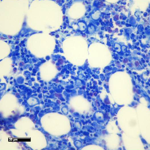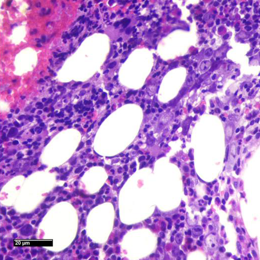 MÉDULA ÓSEA HIPERCELULAR CON CAMBIOS CITOPÁTICOS COMPATIBLES CON INFECCIÓN POR PARVOVIRUS